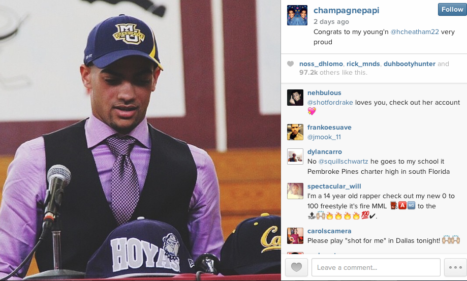 And oh, by the way, Drake—like, THE Drake—gave him an Instagram shout out back in September during his commitment. What does this mean? No one's exactly sure. But, dude, Drake.